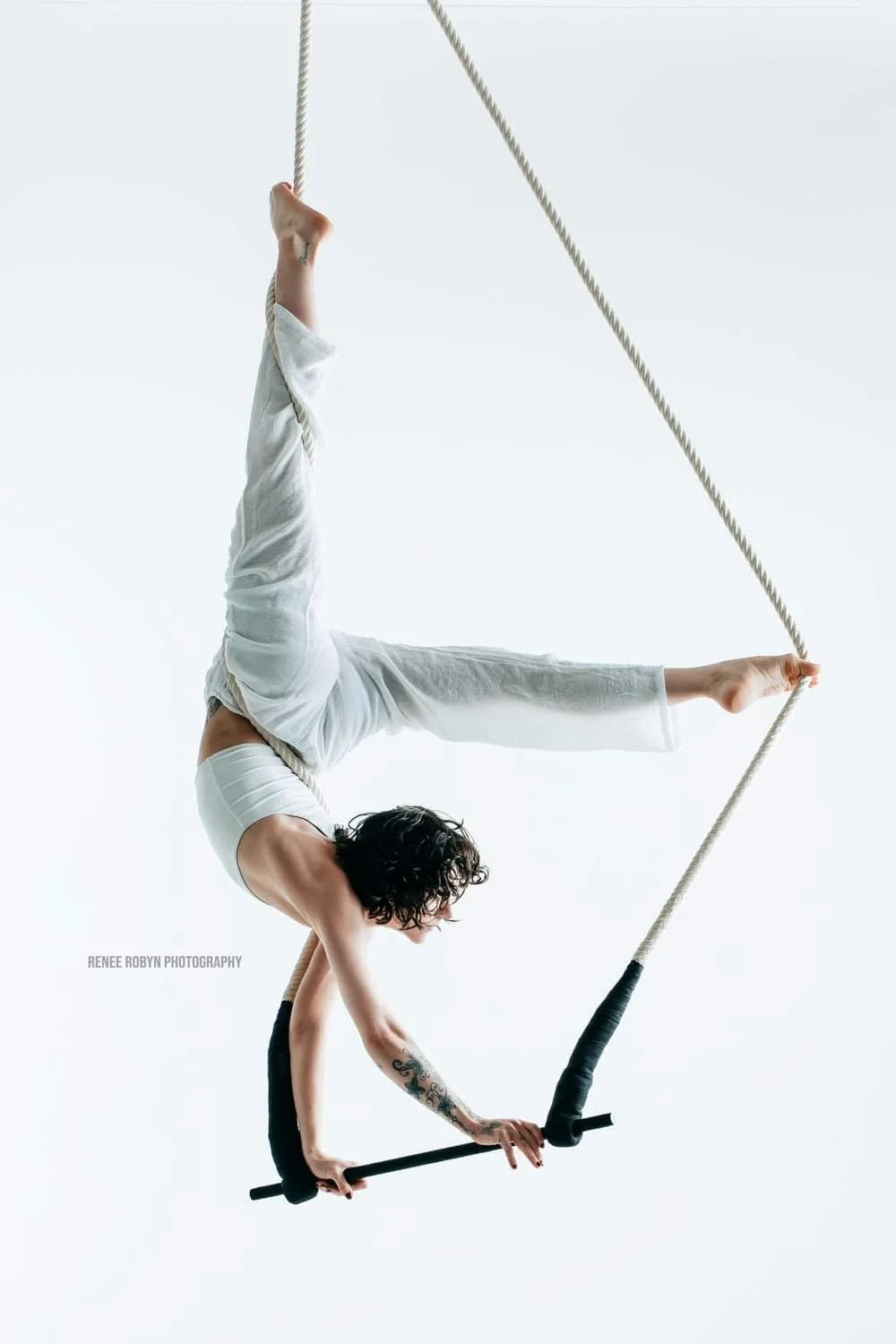 After tasting the freedom of flying, his athletic and artistic pursuits quickly transitioned into focusing his energy into circus arts. He initially trained as an aerial hoop specialist but has since explored a wide range of disciplines: aerial pole, handbalancing, rope, chains, and duo straps.