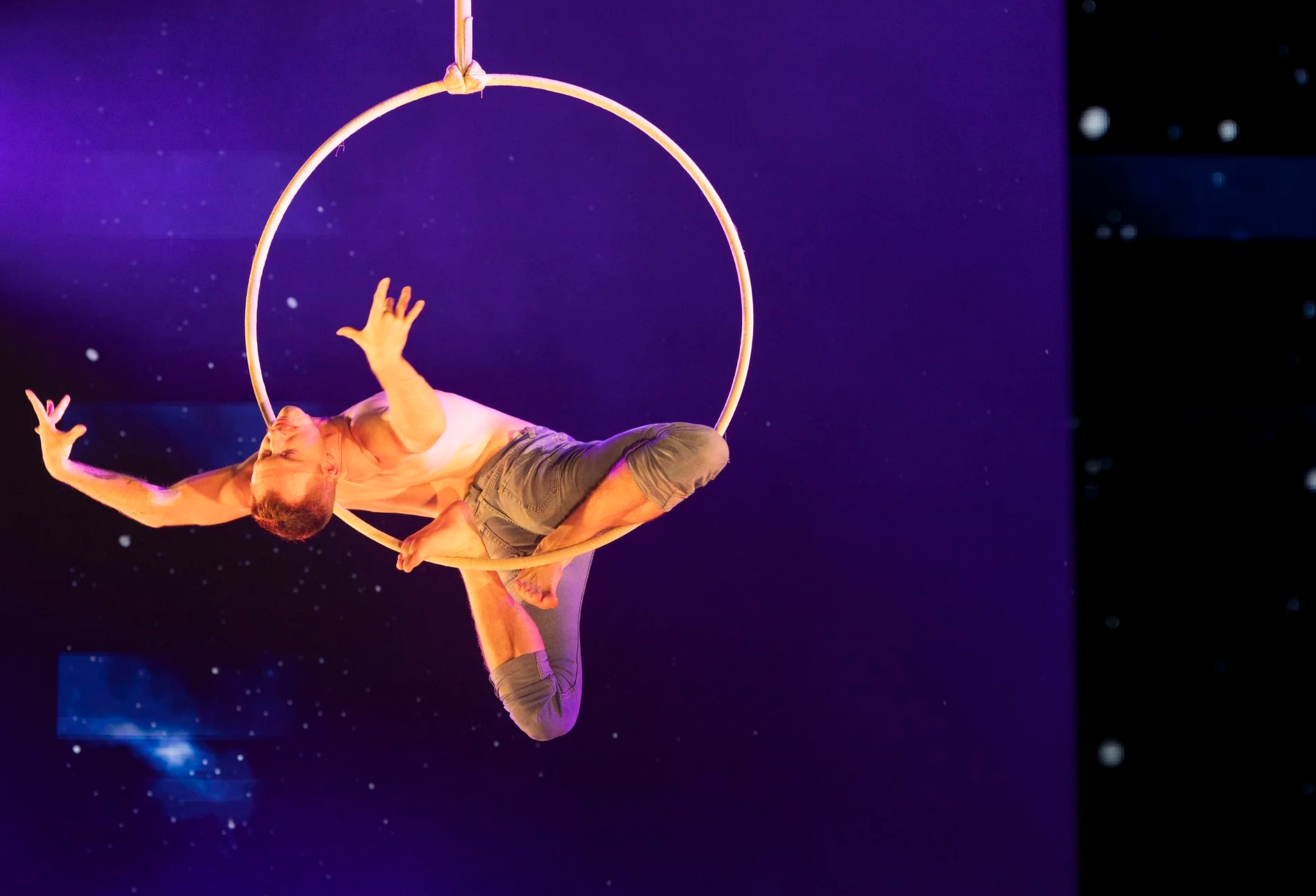 Graduating in 2022, he was immediately contracted with Carnival Cruise Lines as an aerial swing and returned in 2023 as lead male aerialist and aerial captain. During this time, Mitchell discovered a love for Aerial Hoop, creating an act that earned him a 2024 audition with Cirque du Soleil, and a contract with Virgin Voyages / les 7 doigts. In 2025 Mitchell performed in the Alberta Circus Festival, Salieri Circus Award in Italy, and a US tour on ‘Cirque Dreams Holidaze’ with V-Star Ent and Cirque du Soleil.
